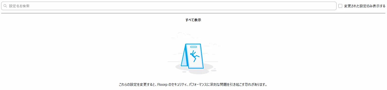 こんな感じの警告画面が表示されるので理解の上「すべて表示」を選択。すると、設定エディタにアクセスできます。