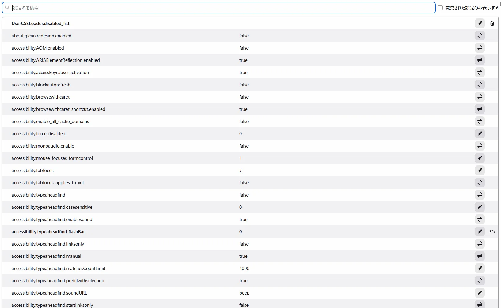 about:preferences(通常の設定画面)などでは変更できない隠された設定項目のことです。下手にいじると危険な設定項目も含まれているので、変更は慎重に行ってください。自己責任でお願いします。